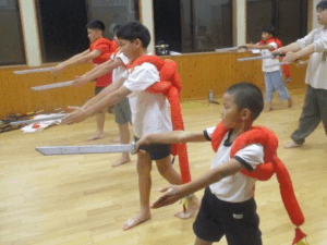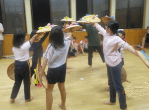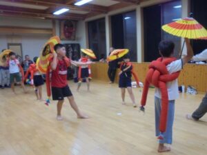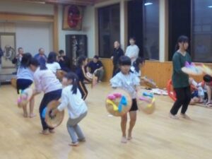 18日の若埜神社祭礼に向けて、子供たちは中村地区に伝わる獅子舞の練習に取り組んでいます。