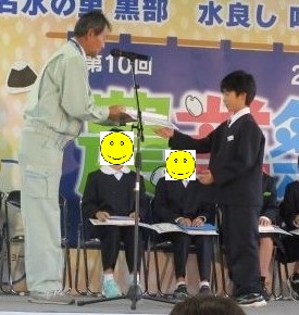 11月1日(土)に、JAくろべで農業祭が行われました。農業体験発表会に、5年生の代表児童が参加し、学校田での田植えや稲刈りを通して学んだことを堂々と発表することができました。また、5年生の農業体験作文や各学年の図工・書写作品の展示もあり、たくさんの方々に見ていただきました。