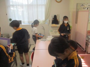 5年生は「くらしをささえる工業生産」の学習をしています。身の周りにどんな工業製品があるか考えて、学校中を探しました。