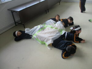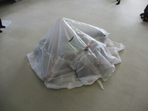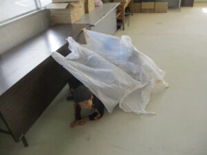 また、教室では、それぞれの紙をつなげて、大きな紙にしました。子供たちからは、「テントみたい」「こたつみたい」という声を上げていました。
