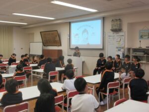 クイズでは、本の作者名や登場するキャラクター、タイトルなどに関するクイズを出し、子供たちは真剣に考えて答えていました。クイズを通して本に興味をもち、これまで以上に読書が好きな子供が増えることを願っています。