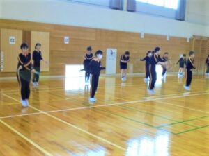 音楽に合わせて、時間いっぱい、学年毎に決められている技を練習しています。どの子供も自分の目標に向かって真剣に練習をしていました。
