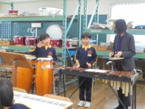 4年生は、音楽科の授業で、いろいろな打楽器を組み合わせた音楽づくりをしました。