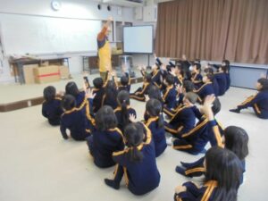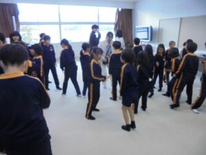 朝活動の時間、2年生と5年生が一緒に、グループワーク(人間関係づくり)に取り組みました。
