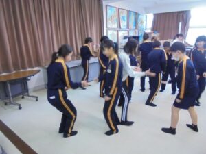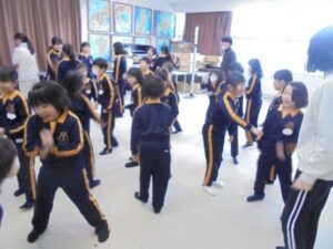 後出しじゃんけん、ラッキーセブンじゃんけん、ひたすらじゃんけん等、2つの学年が入り交じり、教員も一緒になって、いろいろなじゃんけんで大いに盛り上がりました。寒い朝に、心も体もぽかぽかになりました。