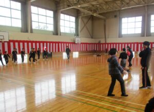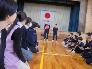 6年生と先生たちとの交流会で、ドッジボールをしました。
