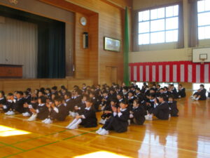 明日はいよいよ入学式です。今日の午後には高学年が力を発揮し、会場は準備万端です。