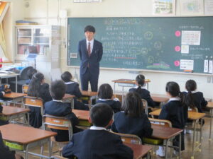 着任式では、どんな先生なのか興味津々で話を聞いていました。これからたくさん話をすることで先生のことも若栗のこともお互いによく知ってもらえたらと思います。