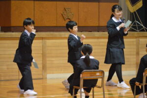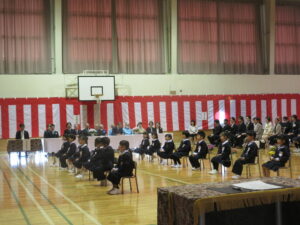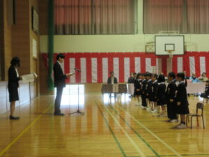 今日は入学式がありました。1年生15名が笑顔で登校してきました。入学式の新入生指名点呼では、担任の先生に名前を呼ばれたら、元気な声で「はい!」と返事をしていました。これから一緒に勉強や運動をするのがとても楽しみになりました。また、在校生は笑顔で1年生を迎え、歌声や姿勢で歓迎する心を示していました。