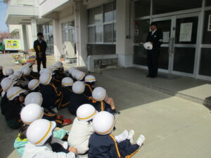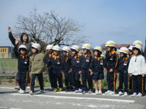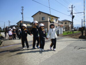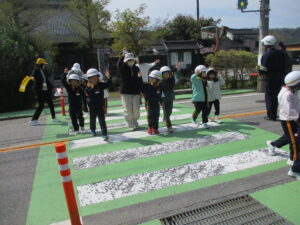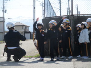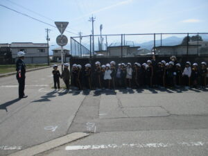 交通安全教室がありました。地域の駐在さんに講師として来ていただき、横断歩道や踏切の渡り方等について教えていただきました。2年生が1年生の手を握ってエスコートすることで、1年生は安心して左右の確認をして横断歩道を渡ることができました。学んだことを生かして、これからも交通安全に気を付けて登下校してほしいと思います。地域の皆様、保護者の皆様、いつも子供たちが安全に登下校できるような見守り、ありがとうございます。
