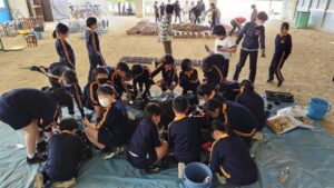 暑い中、子供たちや保護者の皆様と一緒に協力して作業をしました。